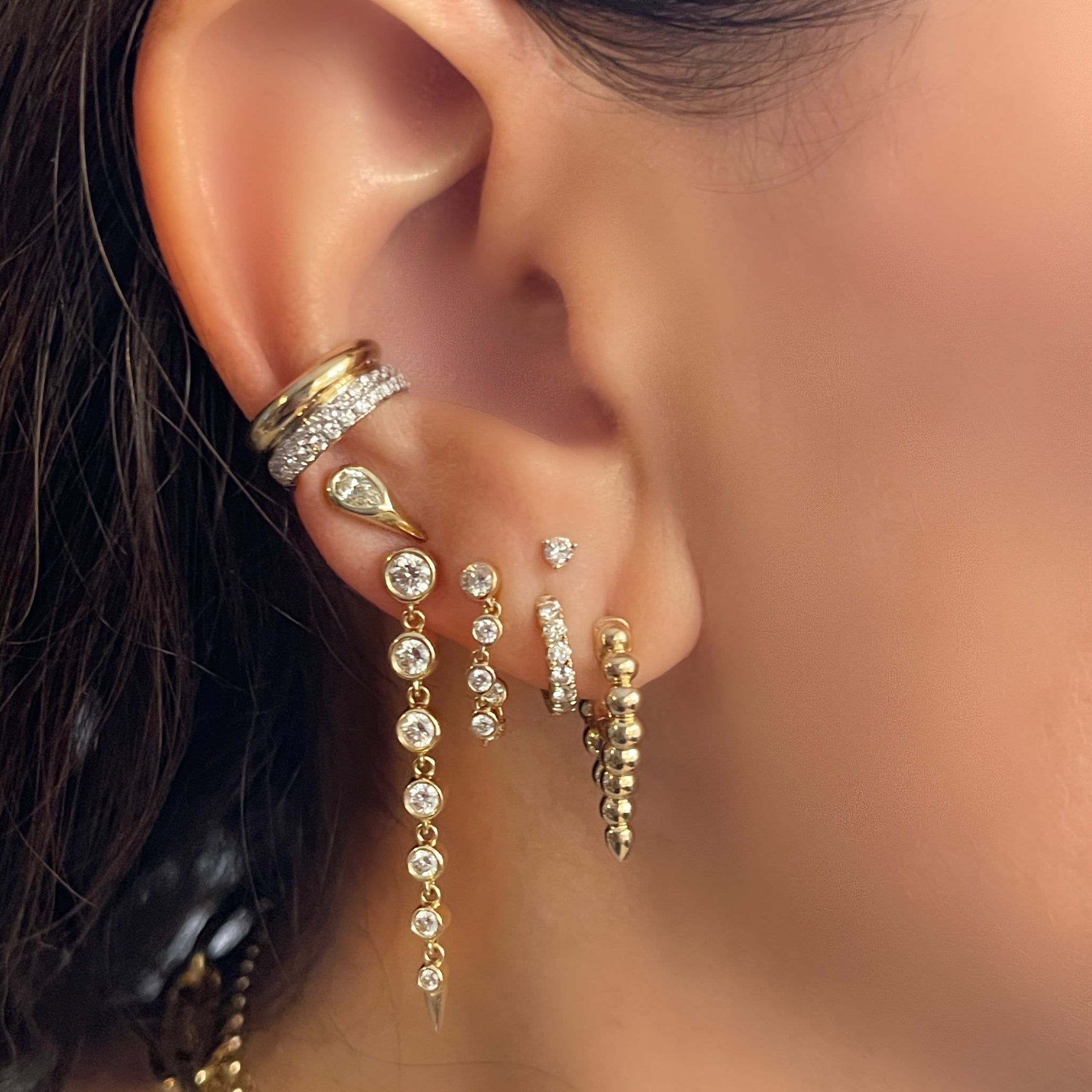 These pear-shaped diamond spike studs are the ultimate ear investment. Each earring delivers .15 carats of genuine brilliance in an elegant pear-cut solitaire, set in timeless 14K yellow gold. The distinctive spike design elevates your look beyond ordinary studs—offering that coveted balance of sophistication and edge that turns heads. Whether you choose a single statement piece or the pair, you're investing in versatility and undeniable style. These are the earrings that work as hard as you do, adapting from boardroom to night out with effortless grace.